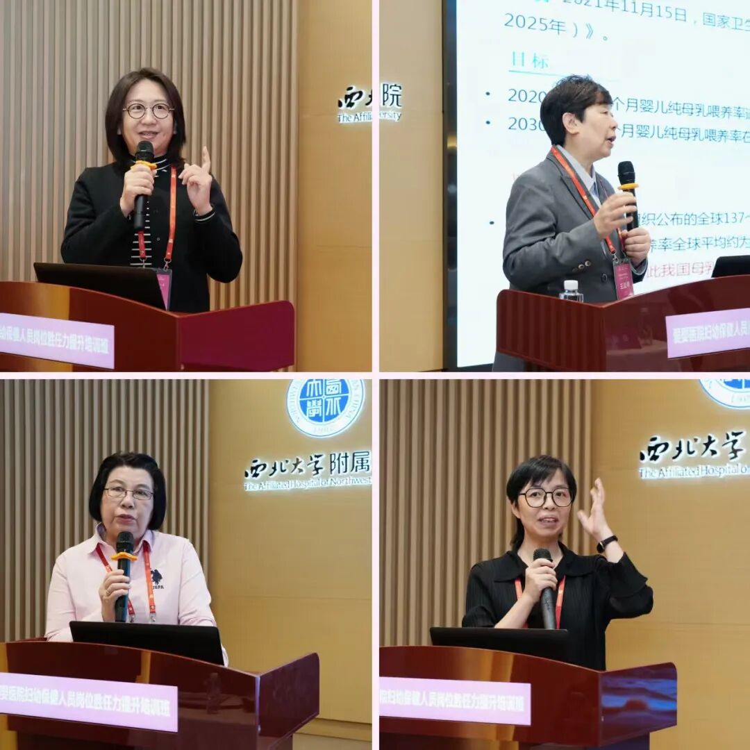中国红十字基金会爱婴医院发展基金管委会丁冰主任系统解读《爱婴医院管理及岗位胜任力提升》;西北大学附属安琪儿妇产医院院长王亚琴教授深入阐述《爱婴医院(BFHI):高质量母婴保健的关键要素》;中国妇幼保健协会(北京母婴健康培训基地)邢舒茶主任带来《从互联网大数据分析看产儿科临床管理》;国际母乳喂养与泌乳研究学会(ISRHML)成员张美华教授则从全生命周期视角分享了《母乳对妈妈的重要性》,为学员精准掌握政策标准与执行路径提供有力支撑。