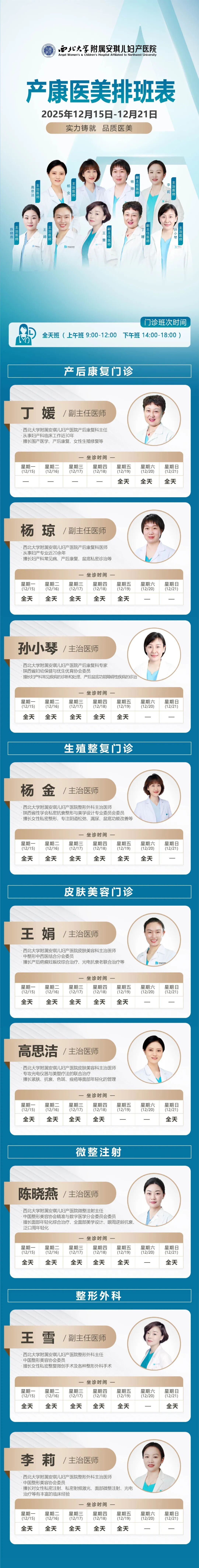 西安安琪儿妇产医院(12月15日至12月21日)专家坐诊时间表