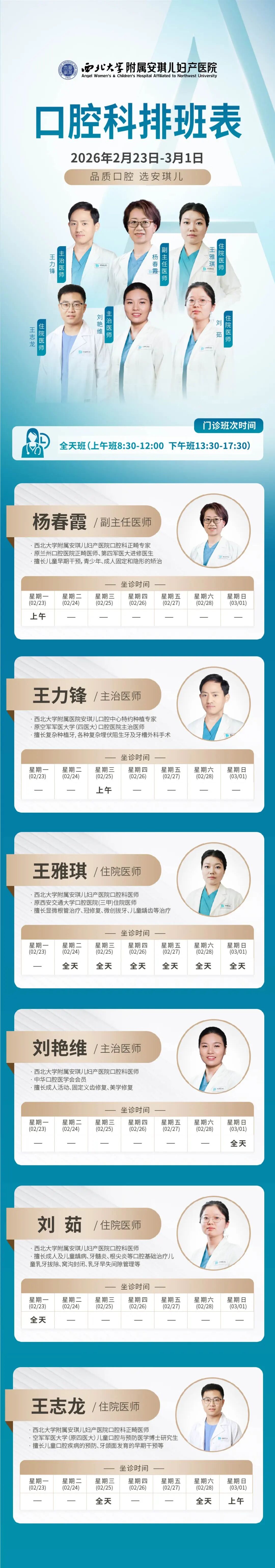 西安安琪儿妇产医院(2月23日至3月1日)专家坐诊时间表